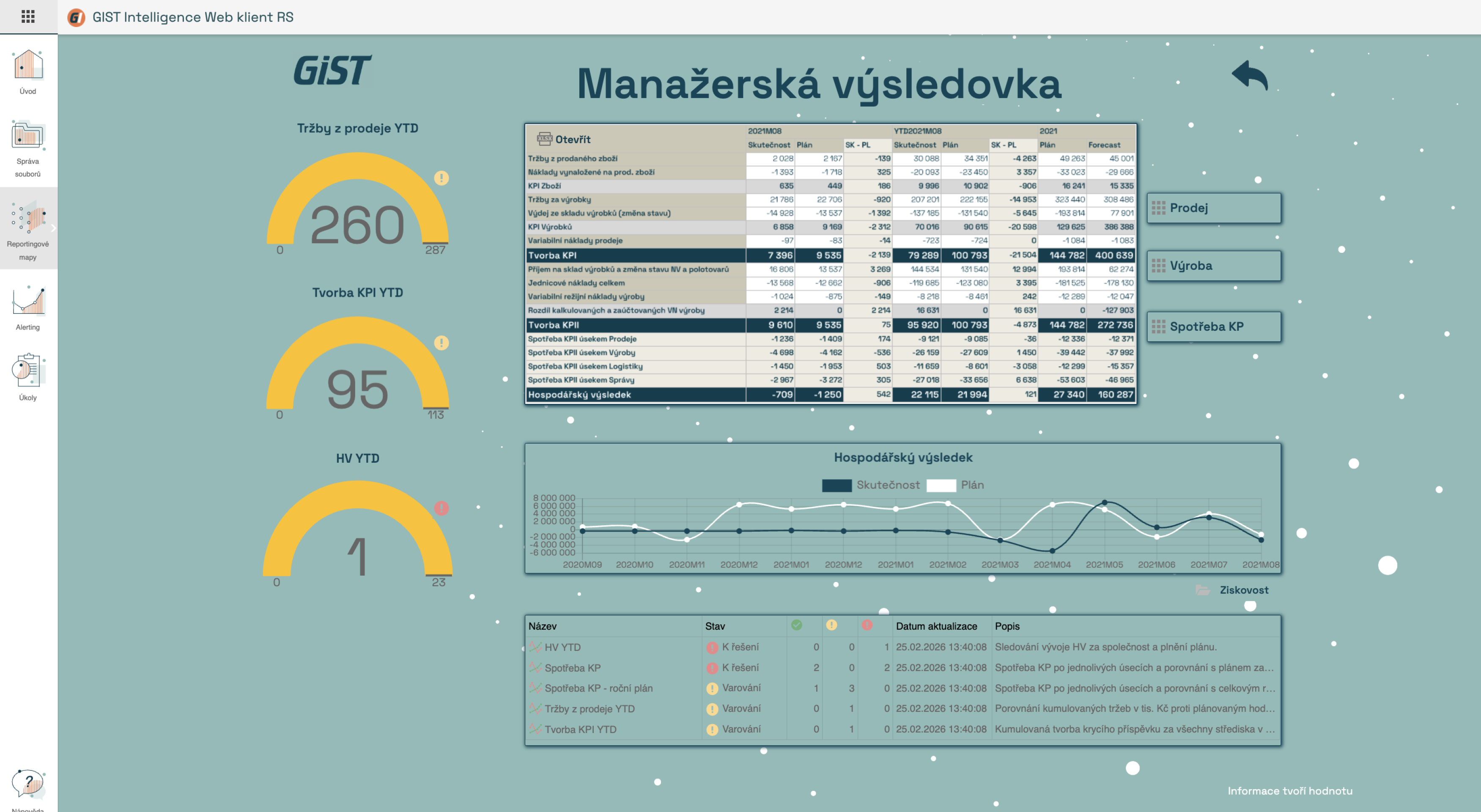 S využitím GISTu se nám podařilo sjednotit a zrychlit tvorbu měsíčních manažerských výsledovek za všechny SBU a podniky ve skupině. Zautomatizovány máme také týdenní manažerské reporty sledující a agregující data, jako přehled o aktuálním stavu závazků a pohledávek, stavu zásob, výhledu tržeb, sledování obrátkovosti apod. Kolegové se tak mohou věnovat činnostem s vyšší přidanou hodnotu.